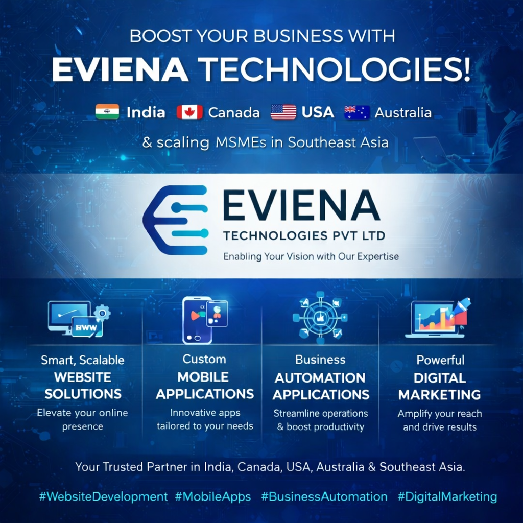 Your Global AI Digital Partner-💡 EVIENA TECHNOLOGIES — Your Global Partner in Web & Application Development.